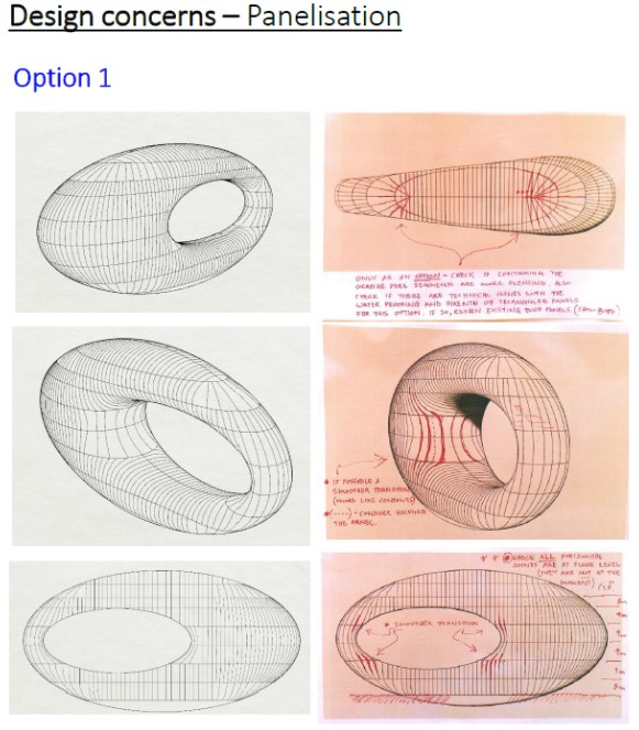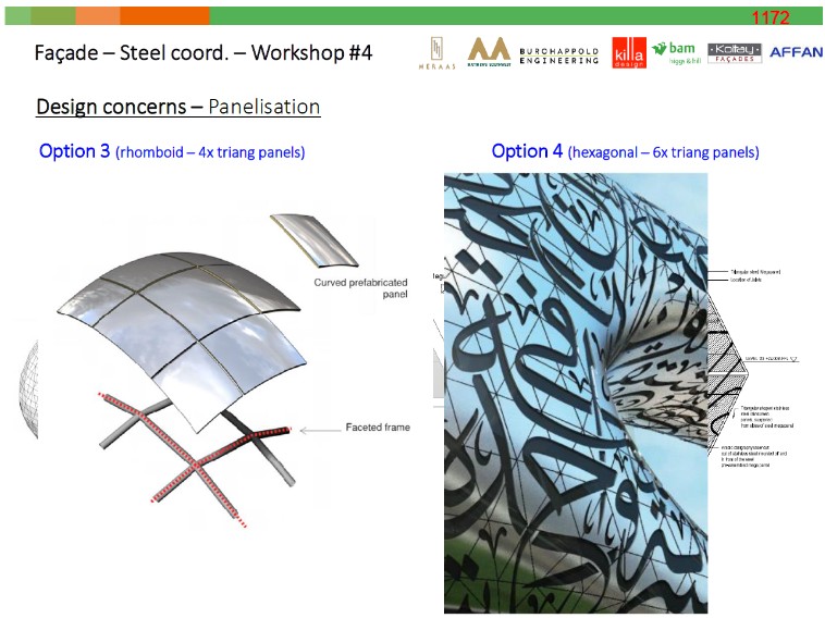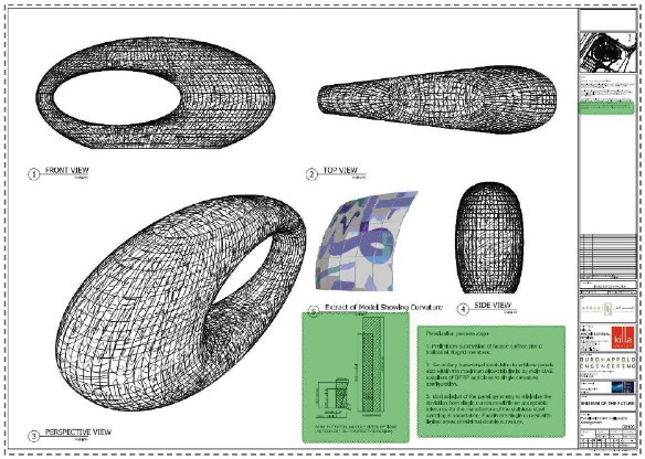4. The façade comprises 1,024 panels manufactured by a specialised robot-assisted process, and covers a total surface area of 17,600m2. The Museum is 77m tall and occupies an overall area capacity of 30,548m2. The façade was fixed to an underlying structure called a “Diagrid”. Photographs on the Museum’s website illustrate the process: