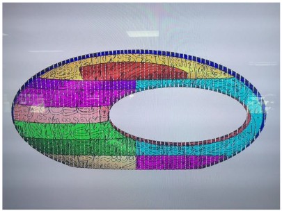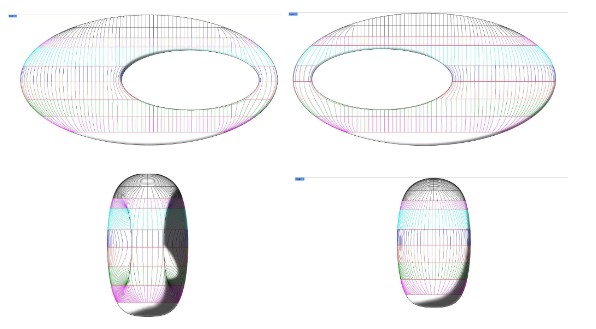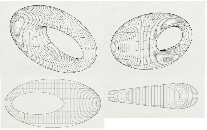 3. A torus is a geometrical figure generated by revolving a circle in three-dimensional space one full revolution about an axis. In its simplest form a doughnut shape is created. The MOTF is much more complex in that the revolving circle changes diameter and follows an elliptical path. This may be illustrated by the drawing below.